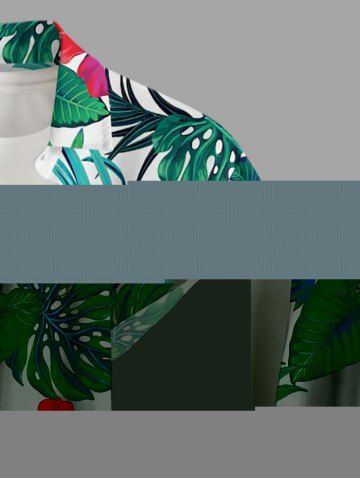 Plus Size Hibiscus Flowers Tropical Leaf Print Buttons Pocket Hawaii Shirt For Men - Green - S