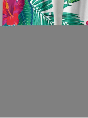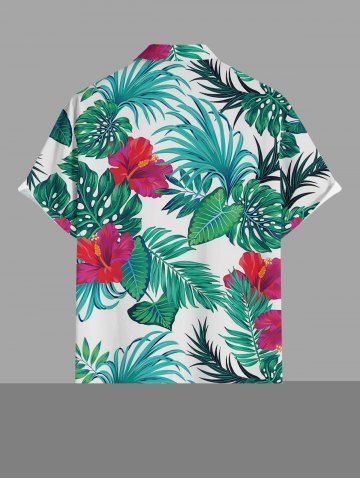 Plus Size Hibiscus Flowers Tropical Leaf Print Buttons Pocket Hawaii Shirt For Men - Green - M