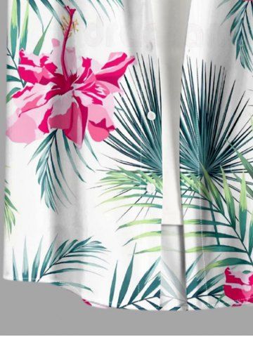 Plus Size Hibiscus Flowers Tropical Leaf Print Buttons Pocket Hawaii Shirt For Men - Pink - M