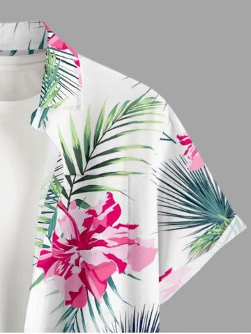 Short Sleeves Shirts > Plus Size Hibiscus Flowers Tropical Leaf Print Buttons Pocket Hawaii Shirt For Men