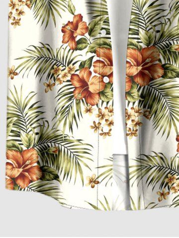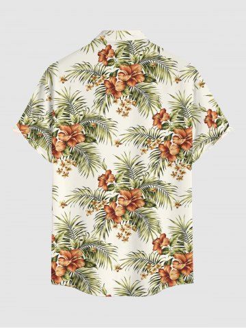 Short Sleeves Shirts > Plus Size Hibiscus Flowers Tropical Leaf Print Buttons Pocket Hawaii Shirt For Men