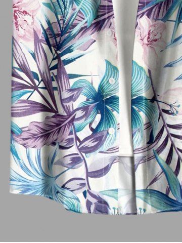 Plus Size Hibiscus Flowers Tropical Leaf Print Buttons Pocket Hawaii Shirt For Men - Light Purple - M