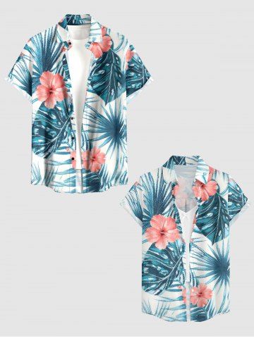 Short Sleeves Shirts > Plus Size Hibiscus Flowers Tropical Leaf Print Buttons Pocket Hawaii Shirt For Men