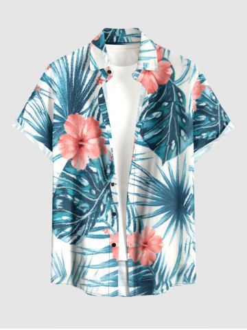 Short Sleeves Shirts > Plus Size Hibiscus Flowers Tropical Leaf Print Buttons Pocket Hawaii Shirt For Men