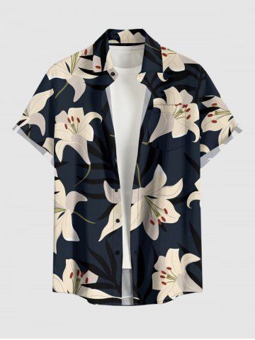 Short Sleeves Shirts > Plus Size Hibiscus Flowers Tropical Leaf Print Buttons Pocket Hawaii Shirt For Men