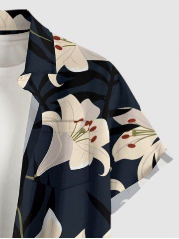 Short Sleeves Shirts > Plus Size Hibiscus Flowers Tropical Leaf Print Buttons Pocket Hawaii Shirt For Men