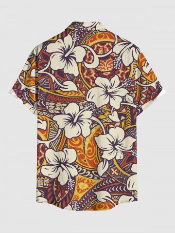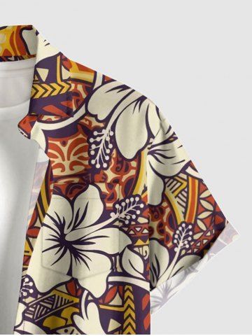 Plus Size Hibiscus Flowers Tropical Print Buttons Pocket Hawaii Shirt For Men - Brown - 5xl