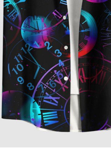 Short Sleeves Shirts > Plus Size Industrial Style Clocks Print Buttons Pocket Shirt For Men