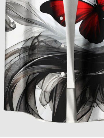 Plus Size Ink Painting Ribbon Butterfly Print Hawaii Ombre Button Pocket Shirt For Men - Black - S