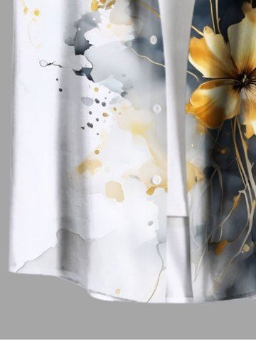 Plus Size Ink Painting Tie Dye Ombre Flower Print Hawaii Button Pocket Shirt For Men - Gray - 2xl