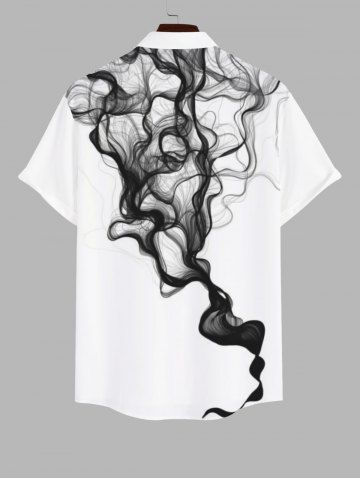 Plus Size Ink Painting Watercolor Print Button Pocket Shirt For Men - White - 4xl