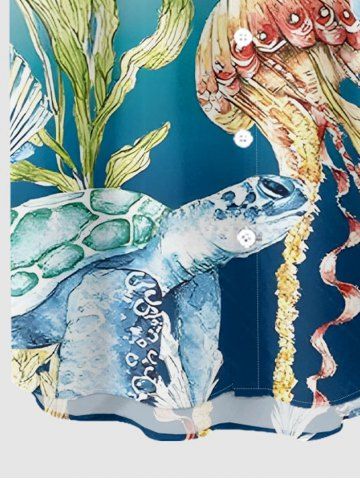 Plus Size Jellyfish Octopus Turtle Ombre Print Buttons Pocket Hawaii Shirt For Men - Sky Blue - 6xl