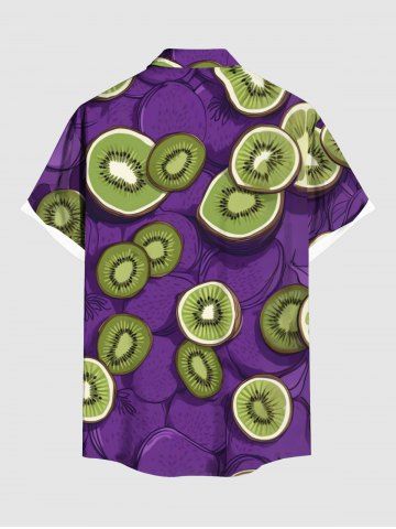 Plus Size Kiwi Fruit Print Hawaii Button Pocket Shirt For Men - Purple - 5xl