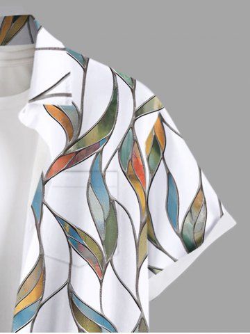 Plus Size Leaf Branch Colorblock Print Hawaii Button Pocket Shirt For Men - White - 3xl