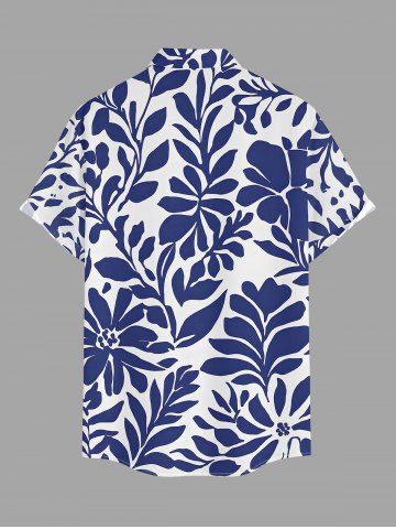 Plus Size Leaf Branch Print Hawaii Button Pocket Shirt For Men - Blue - 3xl
