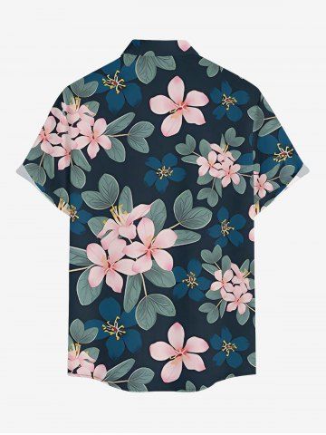 Plus Size Leaf Flower Branch Print Hawaii Button Pocket Shirt For Men - Cadetblue - L