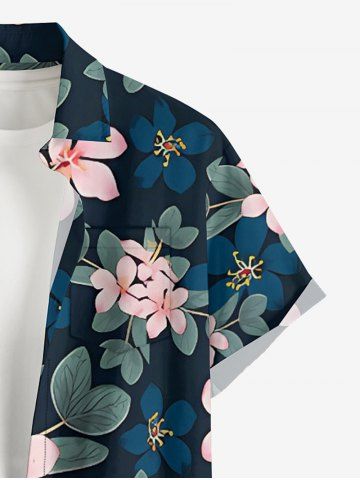 Plus Size Leaf Flower Branch Print Hawaii Button Pocket Shirt For Men - Cadetblue - 3xl