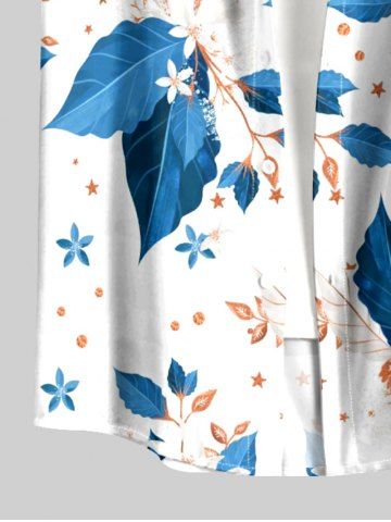 Plus Size Leaf Flower Print Hawaii Button Pocket Shirt For Men - Peacock Blue - M