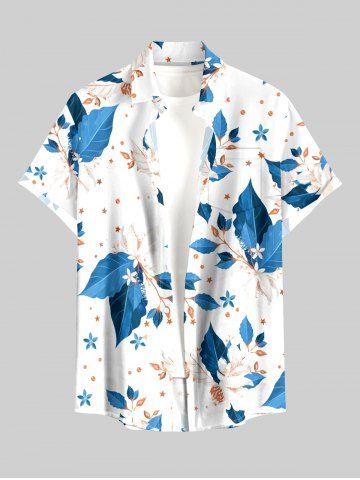 Short Sleeves Shirts > Plus Size Leaf Flower Print Hawaii Button Pocket Shirt For Men