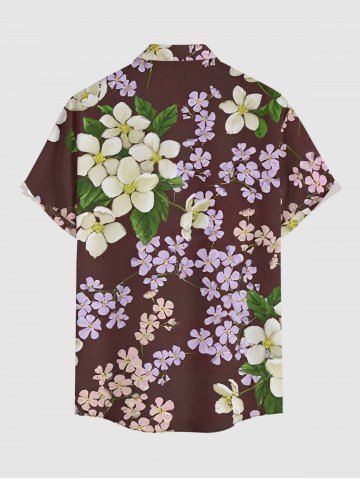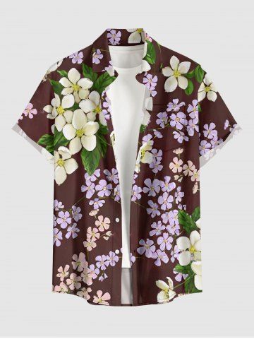 Plus Size Leaf Flower Print Hawaii Button Pocket Shirt For Men - Deep Red - S