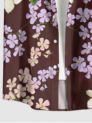 Short Sleeves Shirts > Plus Size Leaf Flower Print Hawaii Button Pocket Shirt For Men