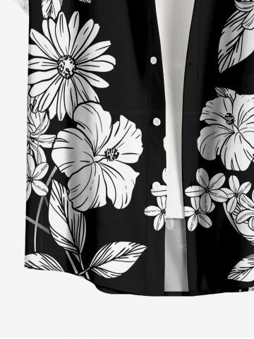 Plus Size Leaf Hibiscus Flower Print Hawaii Button Pocket Shirt For Men - Black - S