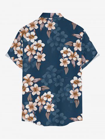 Plus Size Leaf Ombre Flower Print Hawaii Button Pocket Shirt For Men - Cadetblue - S