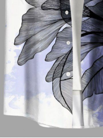 Plus Size Leaf Watercolor Ombre Print Hawaii Button Pocket Shirt For Men - White - Xl