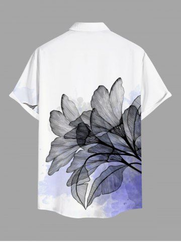 Plus Size Leaf Watercolor Ombre Print Hawaii Button Pocket Shirt For Men - White - 2xl