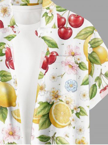 Short Sleeves Shirts > Plus Size Lemon Cherry Flower Print Hawaii Button Pocket Shirt For Men