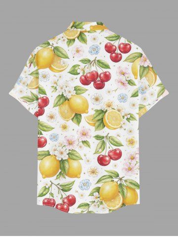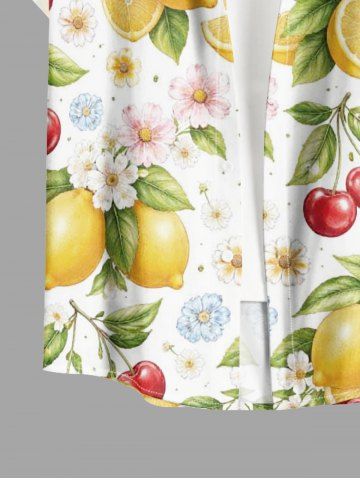 Short Sleeves Shirts > Plus Size Lemon Cherry Flower Print Hawaii Button Pocket Shirt For Men
