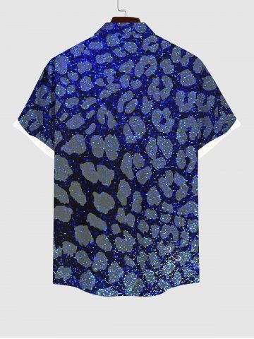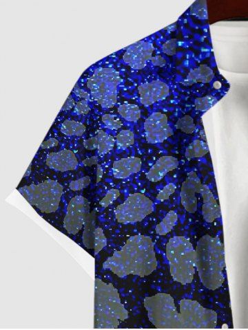 Short Sleeves Shirts > Plus Size Leopard Colorblock Glitter Galaxy Print Button Pocket Shirt For Men