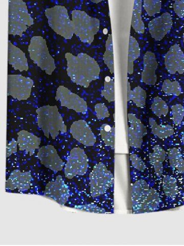Plus Size Leopard Colorblock Glitter Galaxy Print Button Pocket Shirt For Men - Midnight Blue - 2xl