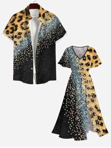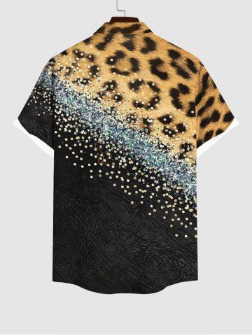 Short Sleeves Shirts > Plus Size Leopard Colorblock Sparkling Sequin 3D Print Buttons Pocket Shirt For Men