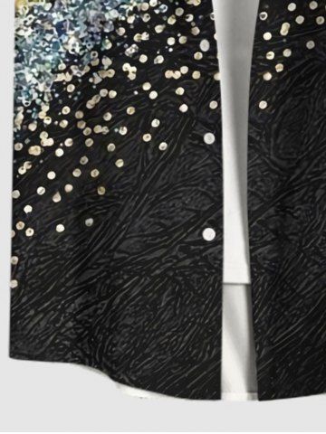 Plus Size Leopard Colorblock Sparkling Sequin 3D Print Buttons Pocket Shirt For Men - Black - 2xl