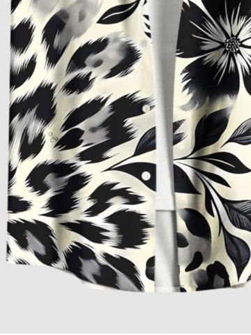 Plus Size Leopard Hibiscus Flower Leaf Print Hawaii Button Pocket Shirt For Men - Black - 5xl