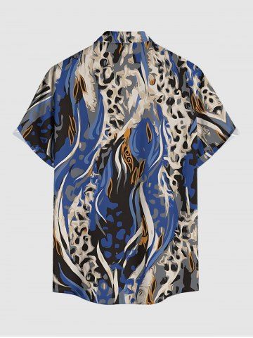 Plus Size Leopard Print Hawaii Button Pocket Shirt For Men - Blue - S
