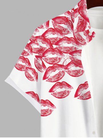 Short Sleeves Shirts > Plus Size Lip Print Button Pocket Shirt For Men