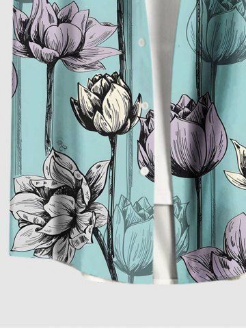 Short Sleeves Shirts > Plus Size Lotus Flower Print Hawaii Button Pocket Shirt For Men