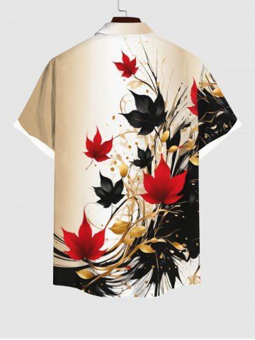 Plus Size Maple Leaf Ink Painting Splatter Print Ombre Button Pocket Shirt For Men - Multi-a - M