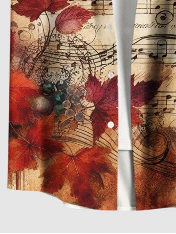 Short Sleeves Shirts > Plus Size Maple Leaf Music Symbol Ombre Print Hawaii Button Pocket Shirt For Men