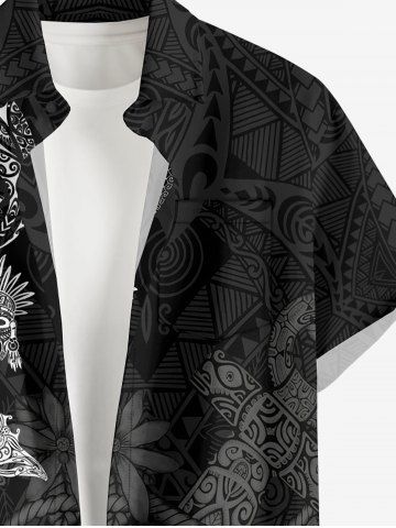 Plus Size Masks Fish Butterfly Sea Horse Ethnic Pattern Print Buttons Pocket Hawaii Shirt For Men - Black - 2xl