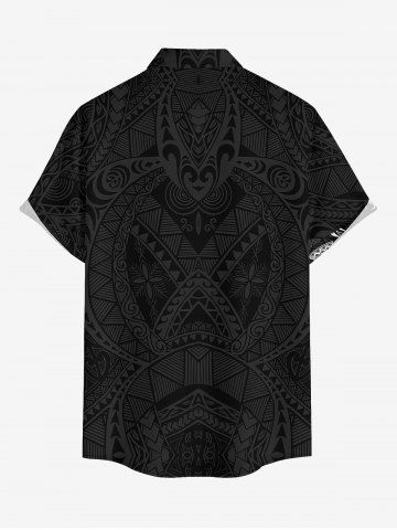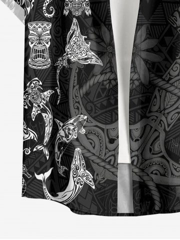 Plus Size Masks Fish Butterfly Sea Horse Ethnic Pattern Print Buttons Pocket Hawaii Shirt For Men - Black - 6xl