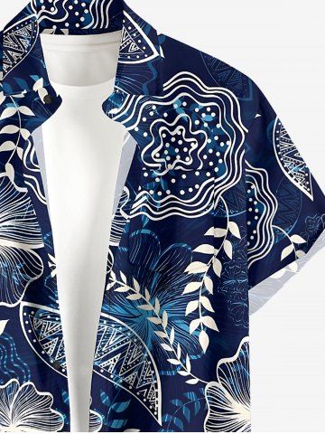 Plus Size Men's Flowers Leaf Print Buttons Pocket Hawaii Shirt - Deep Blue - L