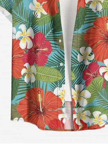 Short Sleeves Shirts > Plus Size Men's Hibiscus Flower Tropical Leaf Print Buttons Pocket Hawaii Shirt