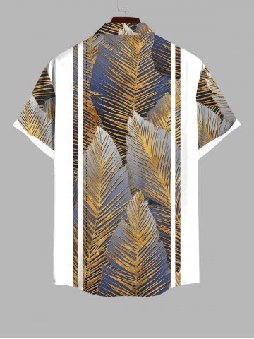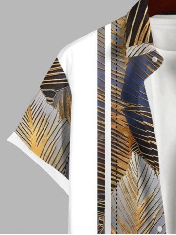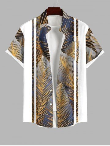 Short Sleeves Shirts > Plus Size Metallic Feather Colorblock Print Buttons Pocket Hawaii Shirt For Men