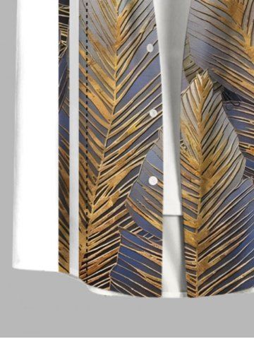 Plus Size Metallic Feather Colorblock Print Buttons Pocket Hawaii Shirt For Men - Coffee - 4xl