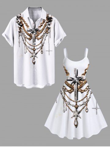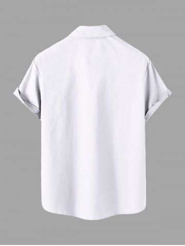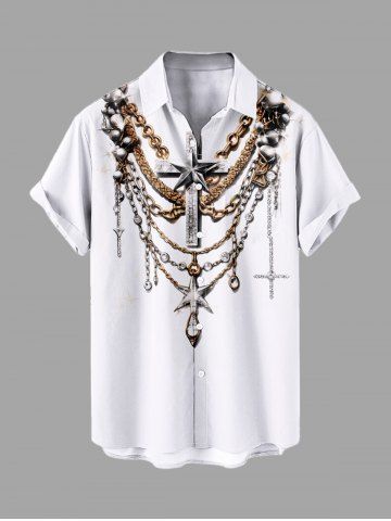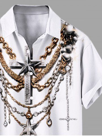 Plus Size Metallic Layered Chain Tassel Star Cross Print Button Pocket Shirt For Men - White - 4xl