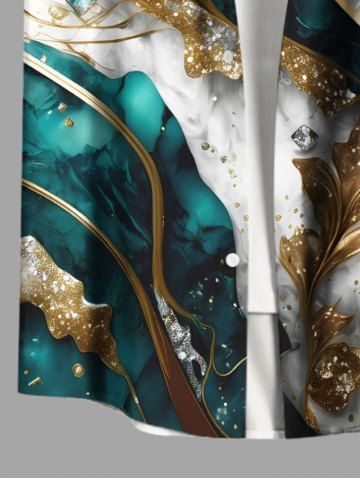 Plus Size Metallic Leaf Diamond Print Buttons Pocket Hawaii Shirt For Men - White - Xl