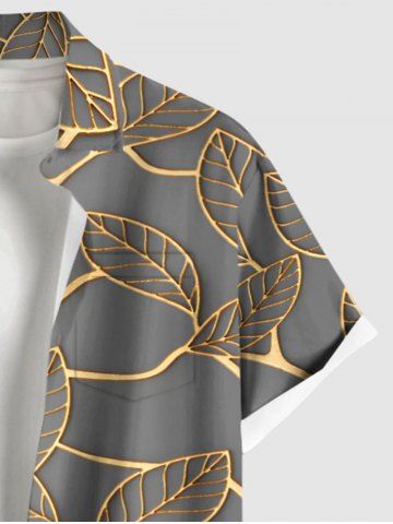 Plus Size Metallic Leaf Print Buttons Pocket Hawaii Shirt For Men - Gray - 5xl